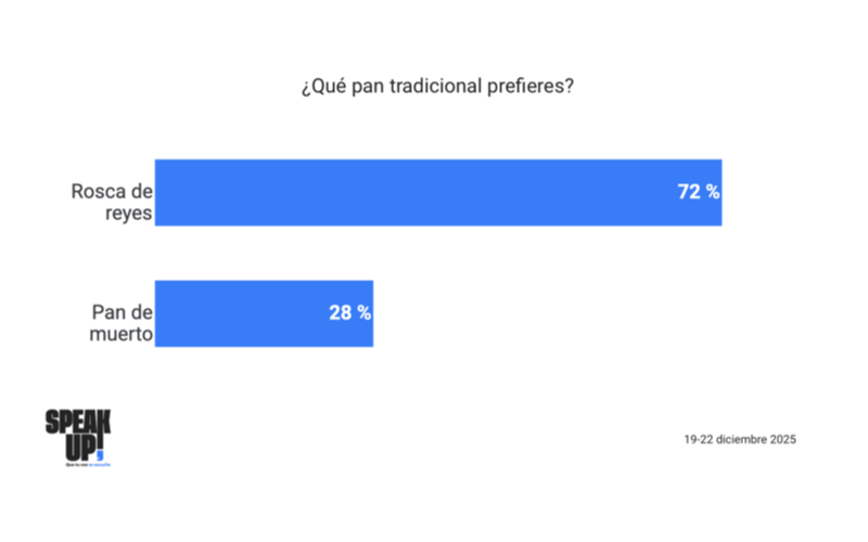 Siete de cada diez mexicanos (72%) eligen la rosca de reyes como su pan favorito. El pan de muerto, aunque relevante y profundamente simbólico, queda relegado a un segundo plano frente a una tradición que sigue ocupando el centro de la mesa.